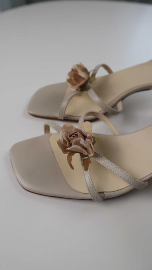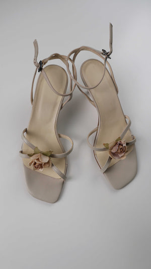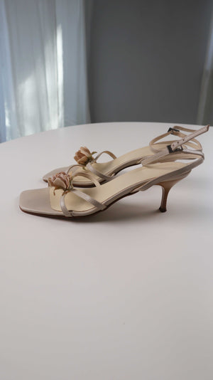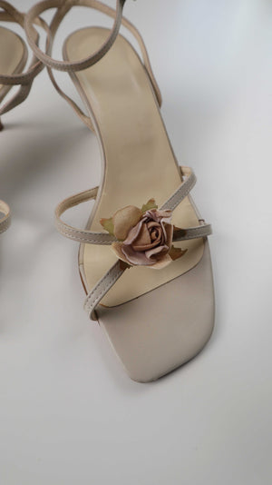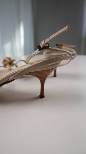 Made in Italy Slipper High Heels Creme Beige 39 Rose Blumen Hochzeitsschuhe