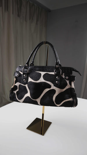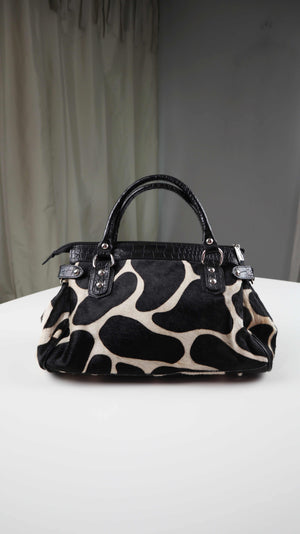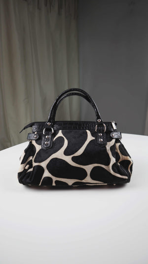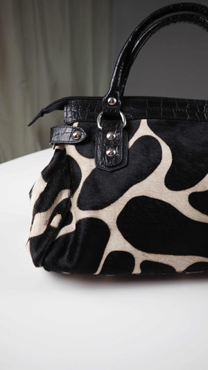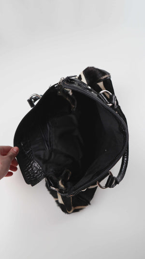 Made in Italy Tasche Handtasche Schwarz Weiß Kuhmuster Kuhfell