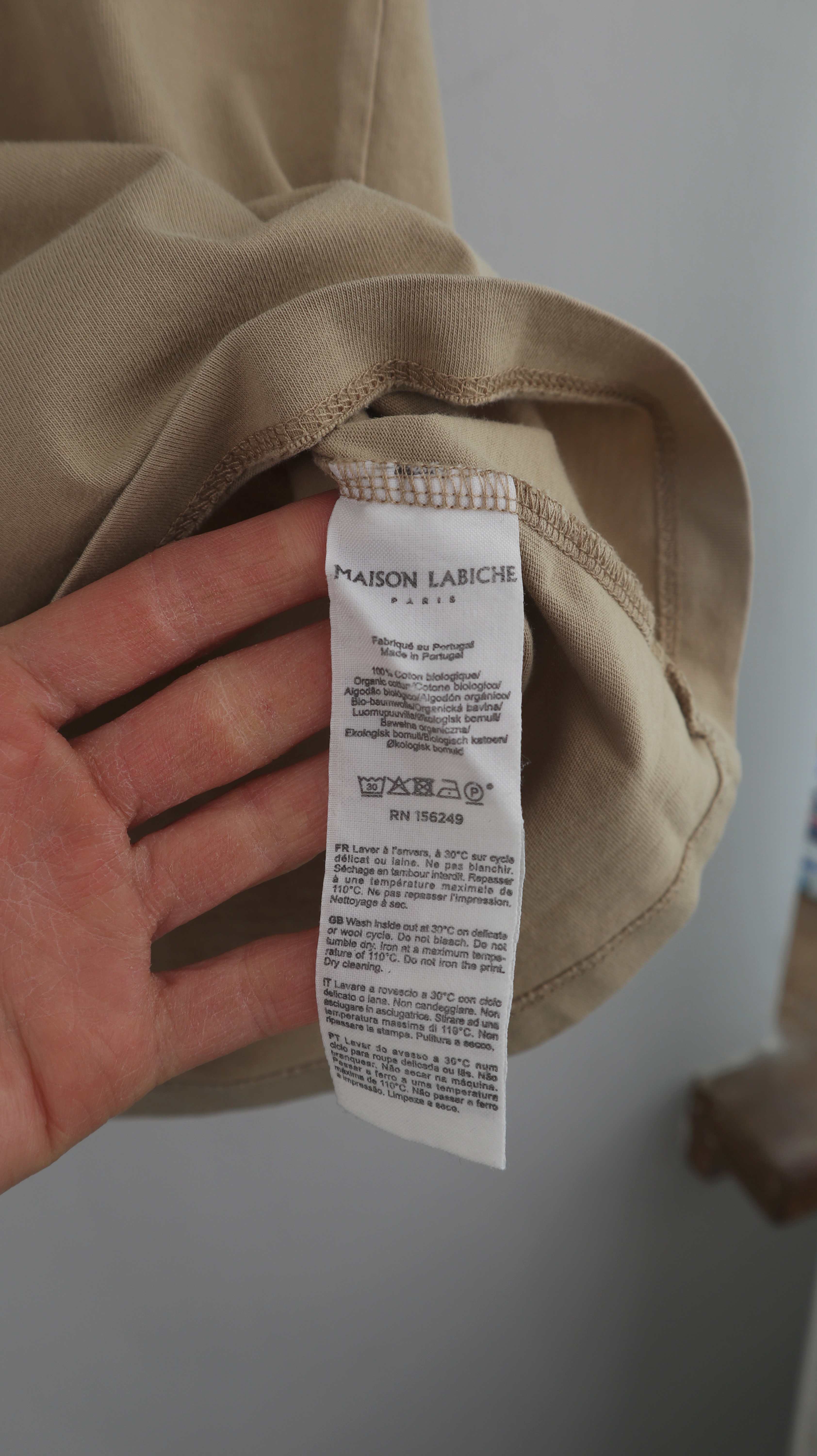 Beiges Shirt von Maison Labiche in M. 50 cm Achselweite und 66 cm Länge. Plus Versand