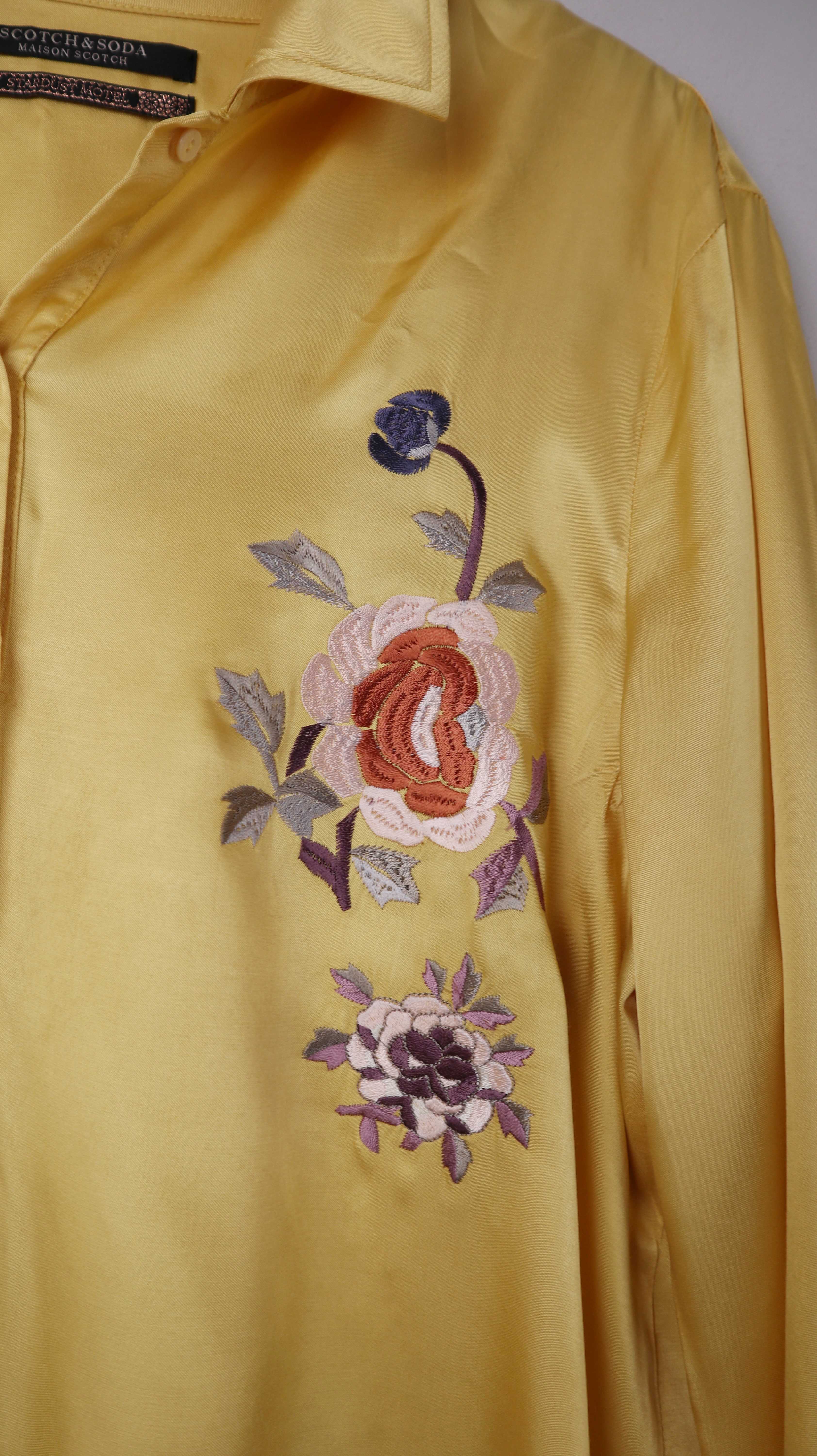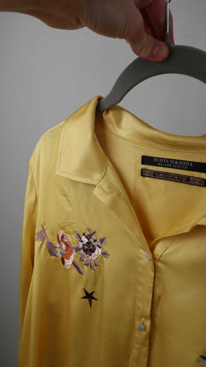 Maison Scotch Bluse Shirt Oberteil gelb Stardust Motel bestickt 38 M