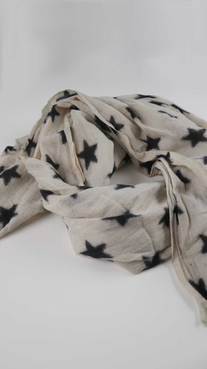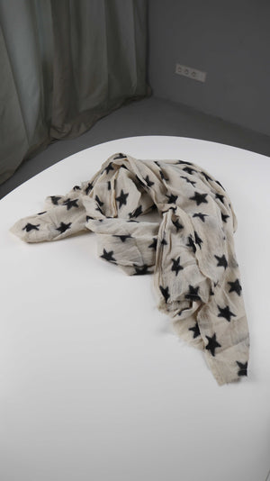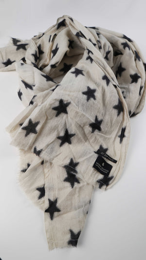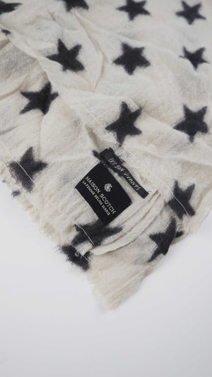 Maison Scotch Schal Tuch Creme Beige Sterne Muster Wolle