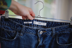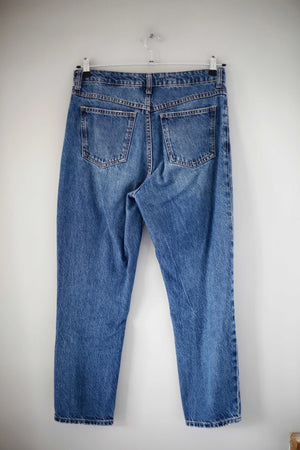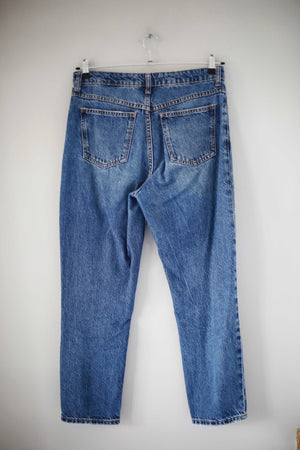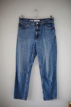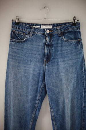 Dunkelblaue Jeans von Mango in 38 M, Mom ist der Style. 40 cm Bundweite, 29 cm Schritthöhe und 64 cm Innenbeinlänge. Plus Versand