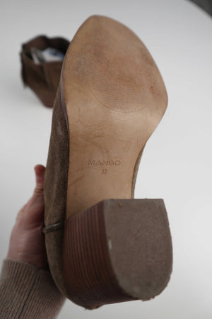 Mango Stiefeletten Braun 38 Khaki Wildleder Lederstiefel Absatzschuhe