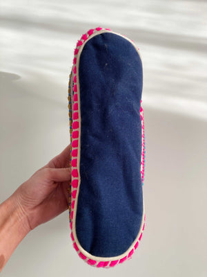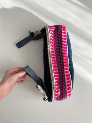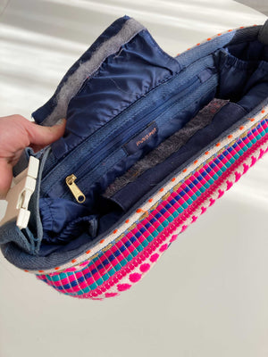 Kleine Anhängetasche für den Lenker von einem Fahrrad. Sie ist von Maramea und Pink mit Ibizamuster. Plus Versand