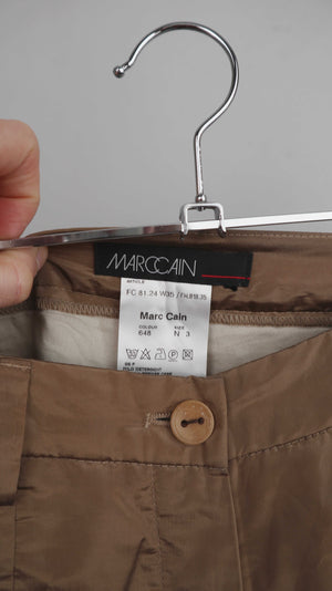 Braune Stoffhose von Marc Cain in Größe Nummer 3. 39 cm Bundweite, 24 cm Schritthöhe und 67 cm Innenbeinlänge. Plus Versand