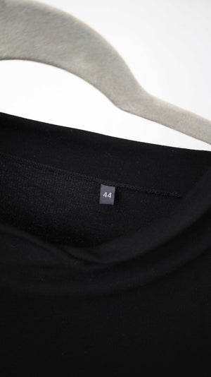 Schwarzes Baumwollkleid in einer 44 von Marc O'Polo. Es ist basic und aus Baumwolle. 55 cm Achselweite und 86 cm Länge. Plus Versand
