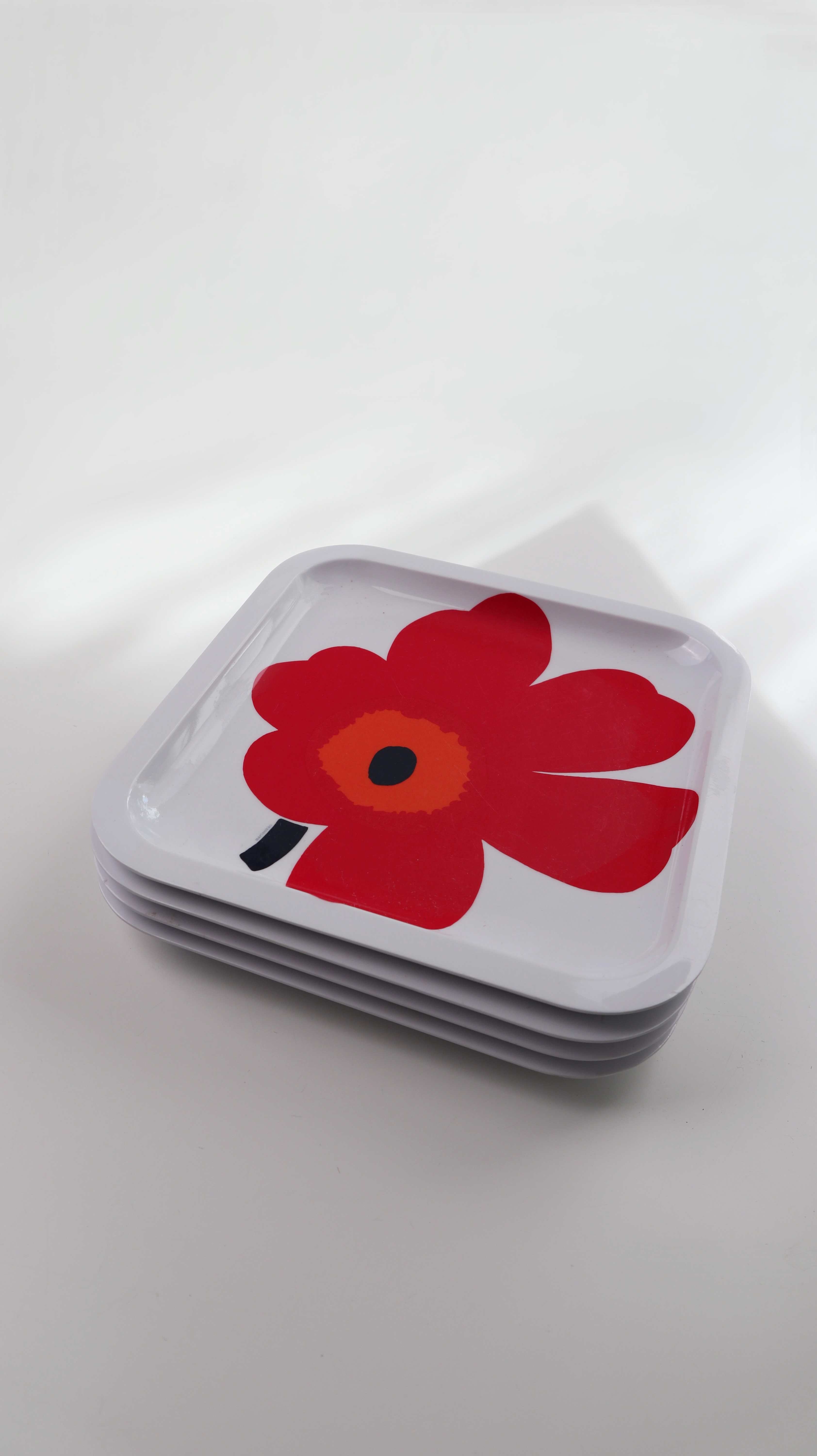 Marimekko Teller Kunststoffteller Set 4 Stück rot Outdoorteller
