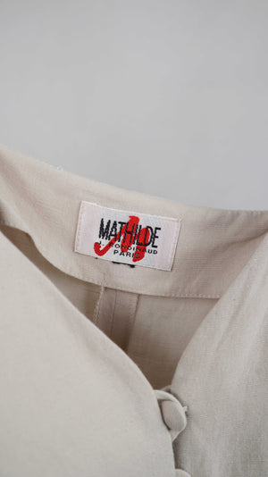 Mathilde J. Rondinaud Kleid 36 S Creme Beige Leinenkleid Vintage Sommerkleid