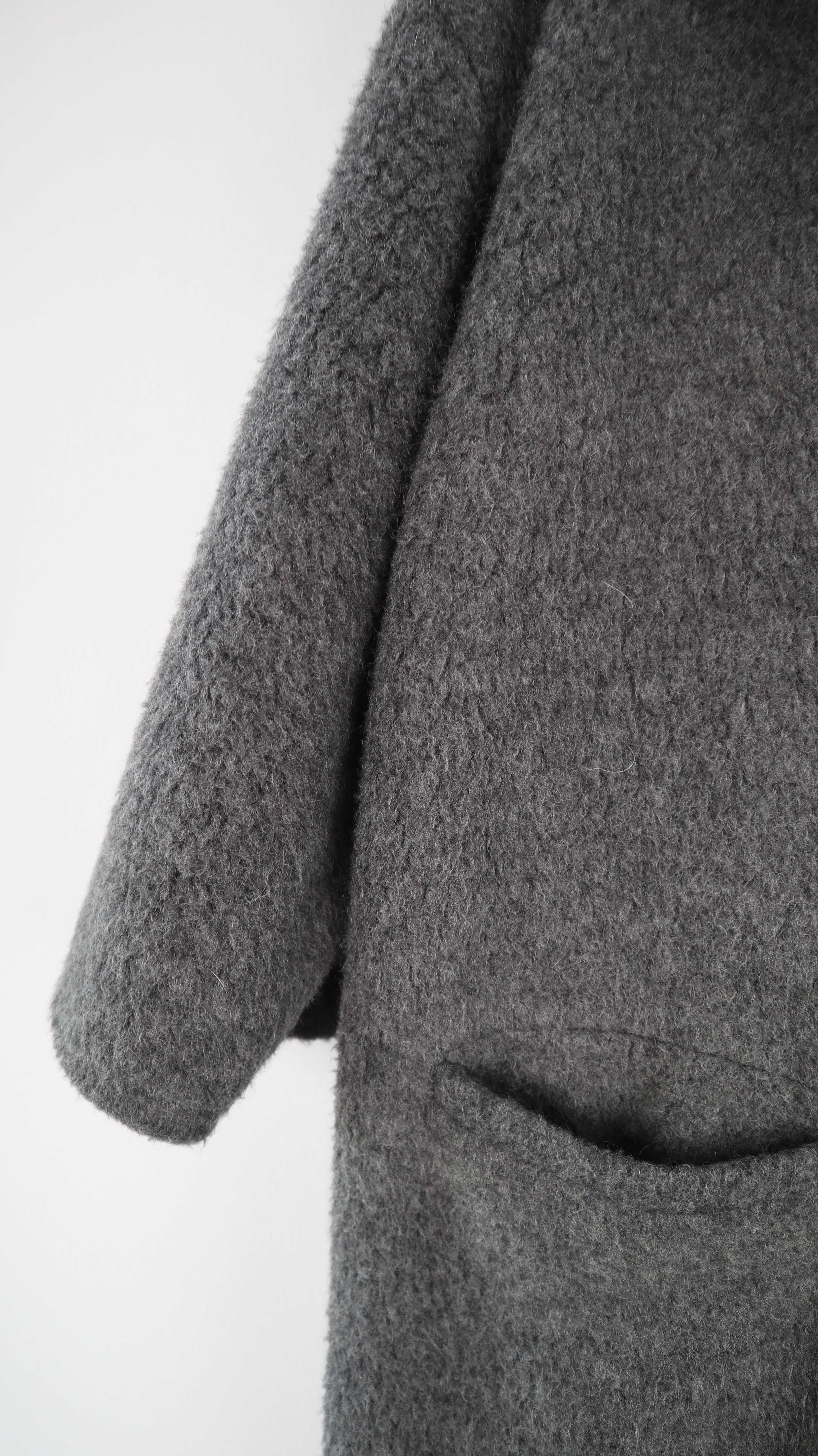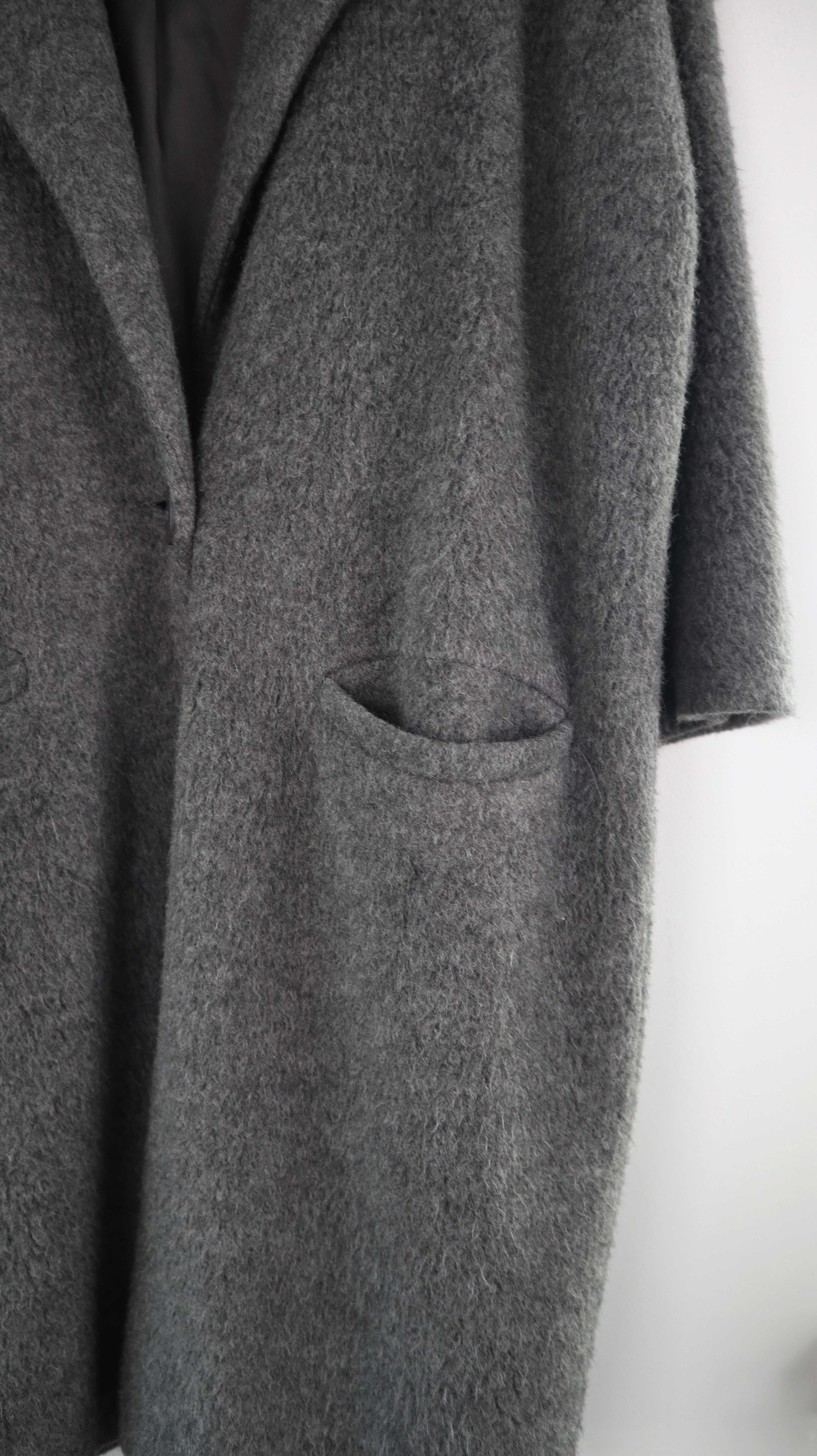 Grauer Mantel mit Wolle von MAX&Co. Er ist in einer S und hat etwas kürzer definierte Ärmel. 60 cm Achselweite und 98 cm Länge. Plus Versand