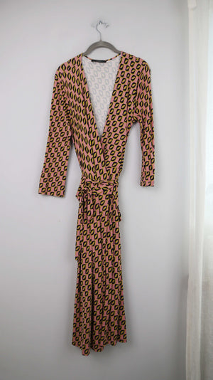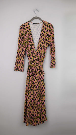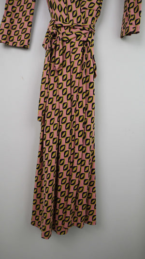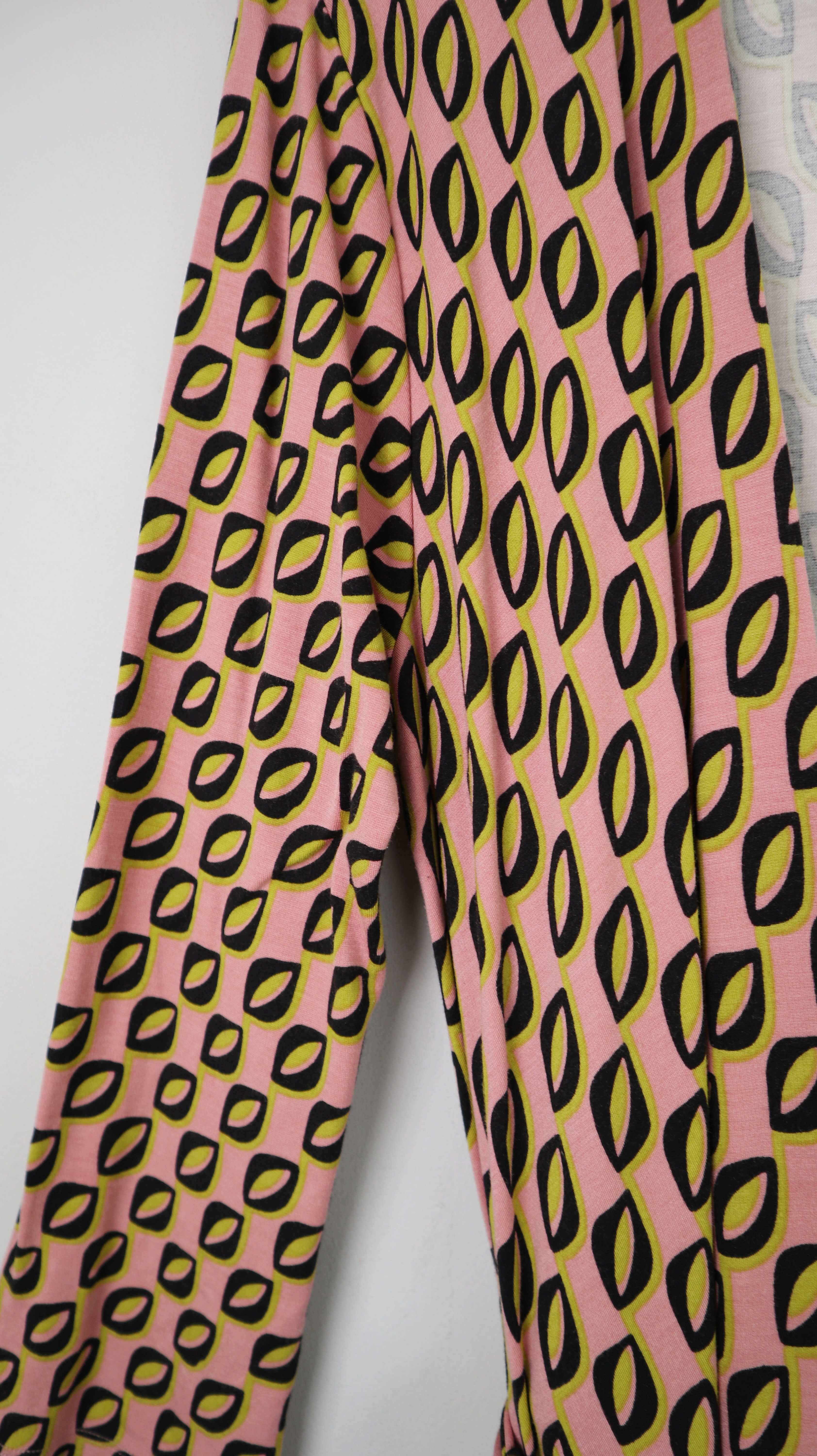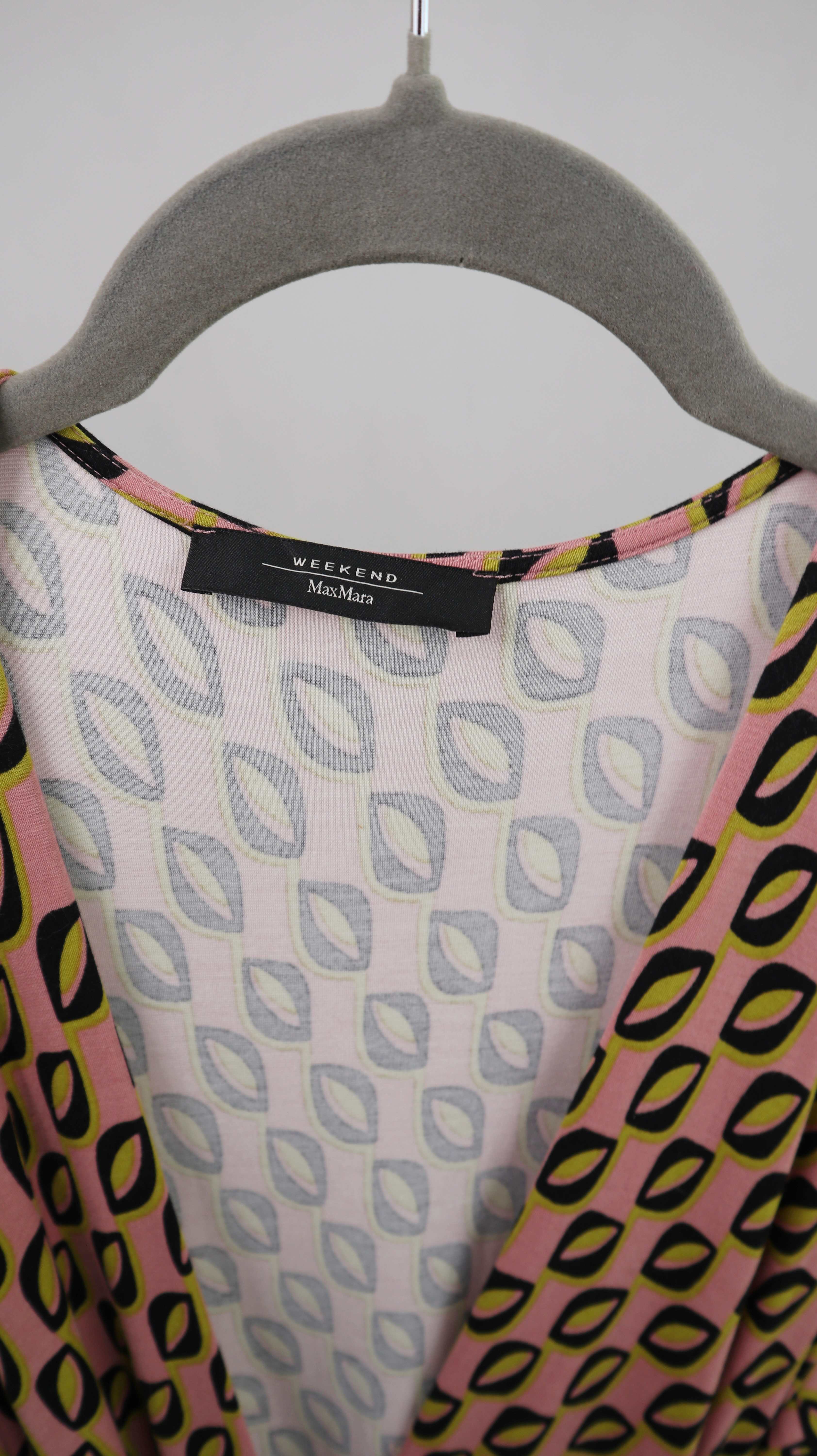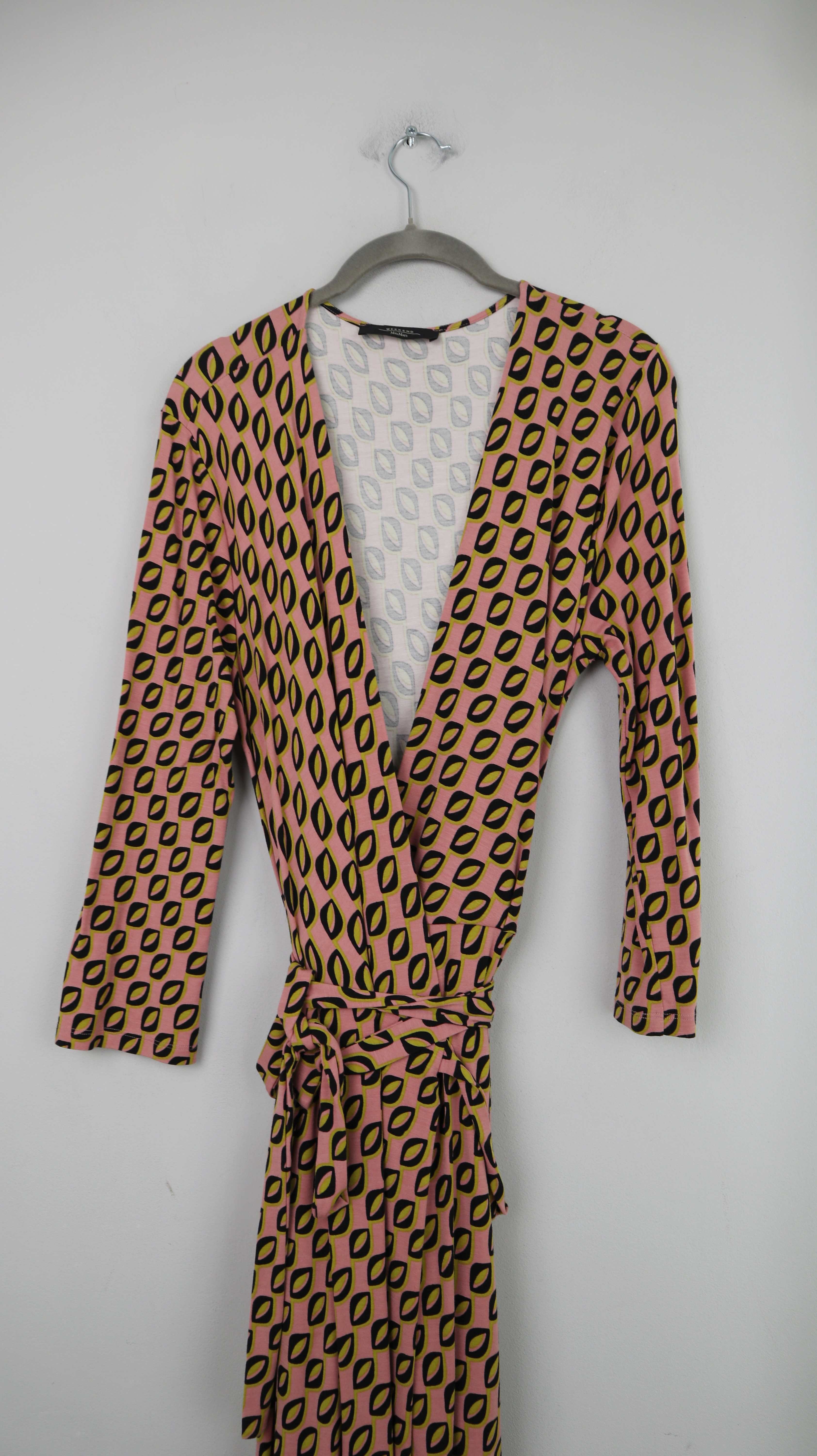 Max Mara Kleid Wickelkleid rosa grün schwarz 40 L Midi Midikleid geometrisch
