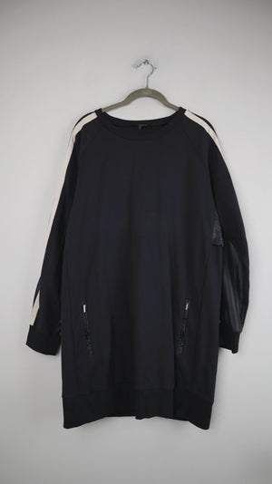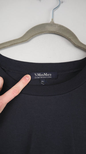 Dunkelblauer Pullover von Max Mara Sport in einer XL mit Details am Rücken. Er hat kleine Taschen. 54 cm Achselweite und 83 cm Länge. Plus Versand