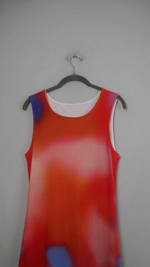 Langes Maxikleid in rot blau. Es passt einer 38 M. 39 cm Achselweite und 140 cm Länge. Plus Versand