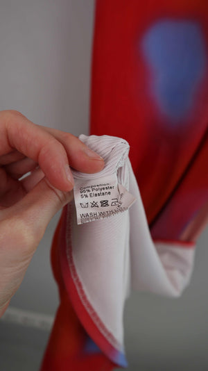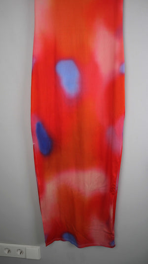 Maxikleid rot Maxi 38 M ripped batik blau Muster Sommerkleid