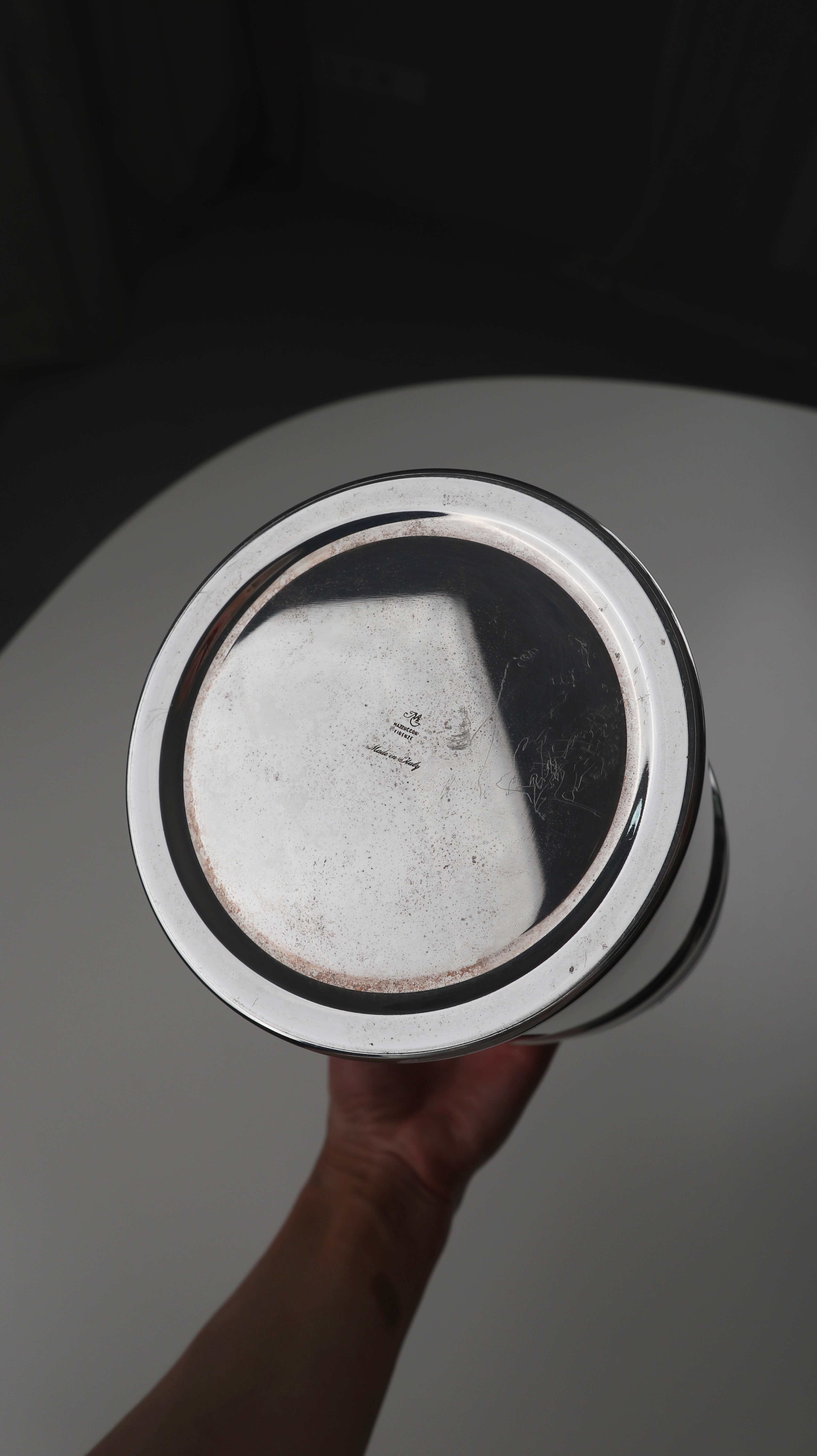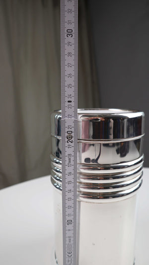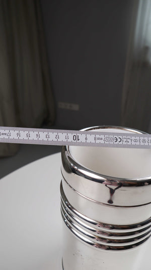 Versilberter Sektkühler aus den 70ern von Mazzucconi Firenze. Höhe etwa 22 cm und Durchmesser 11 cm. Sehr guter Zustand. Plus Versand