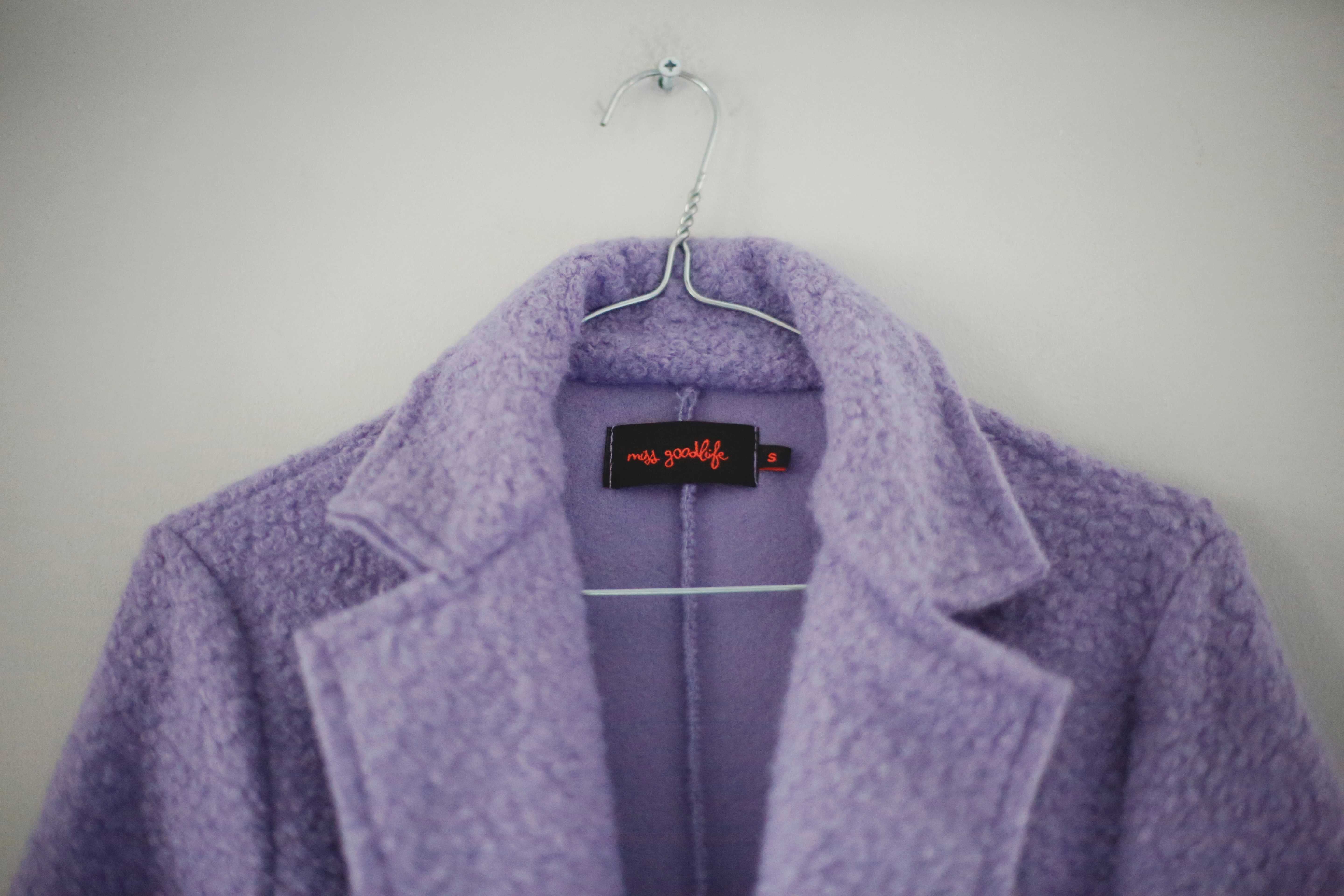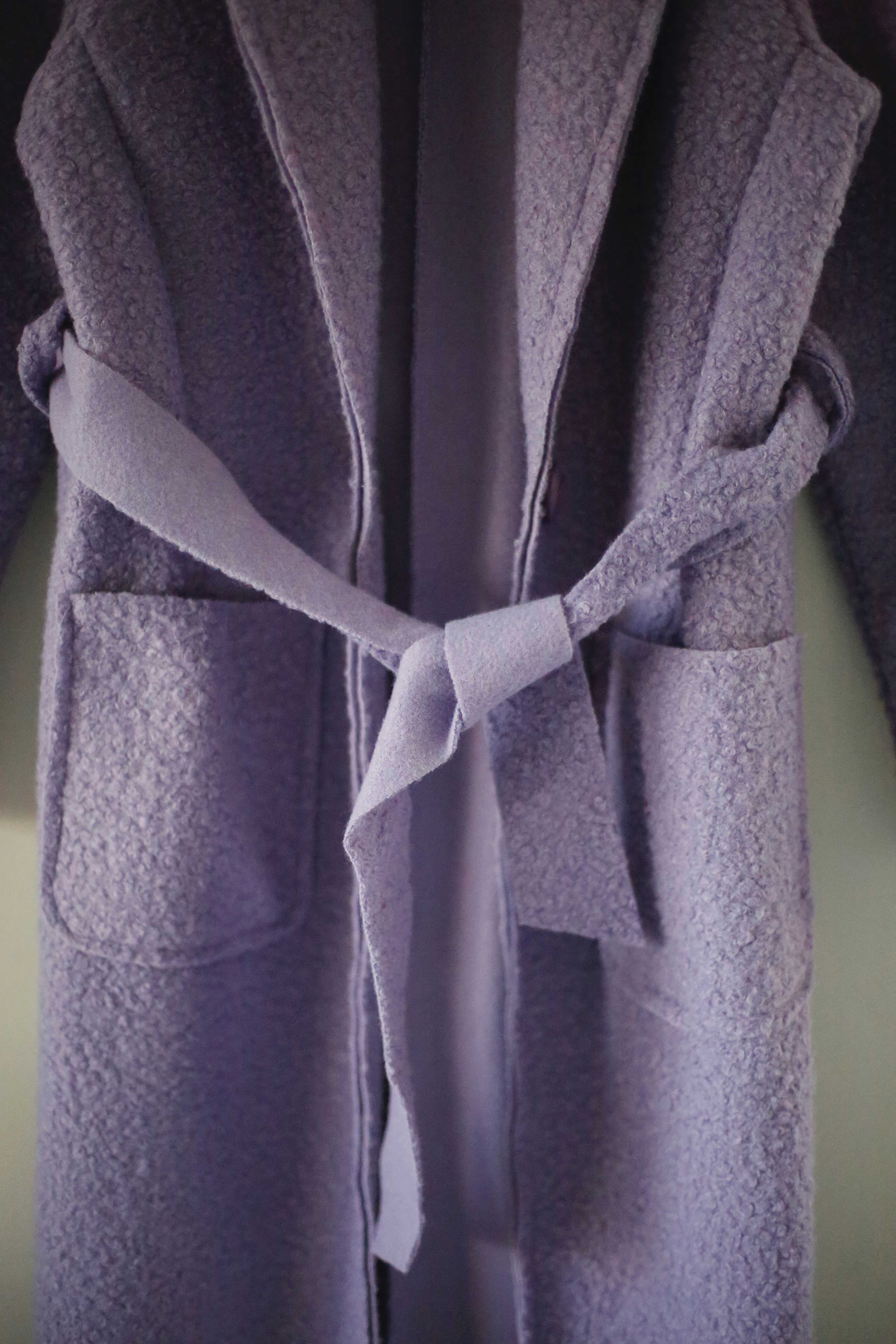 Lila Wickelmantel in einer 36 S von Miss Goodlife. 38 cm Achselweite und 120 cm Länge. Plus Versand