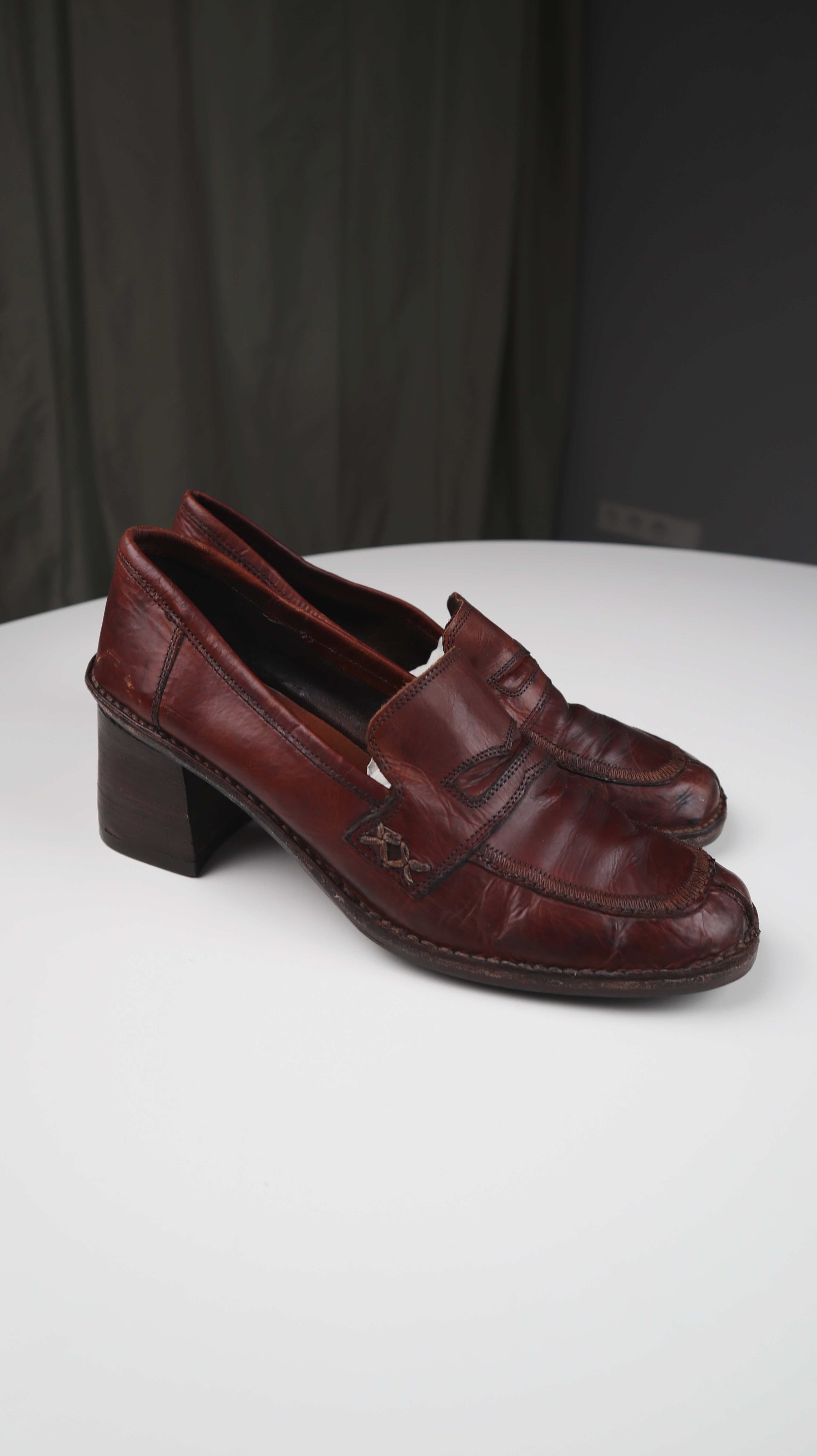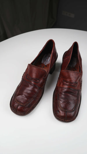 Mokassins 39 Braun Leder Slipper Boots true Vintage