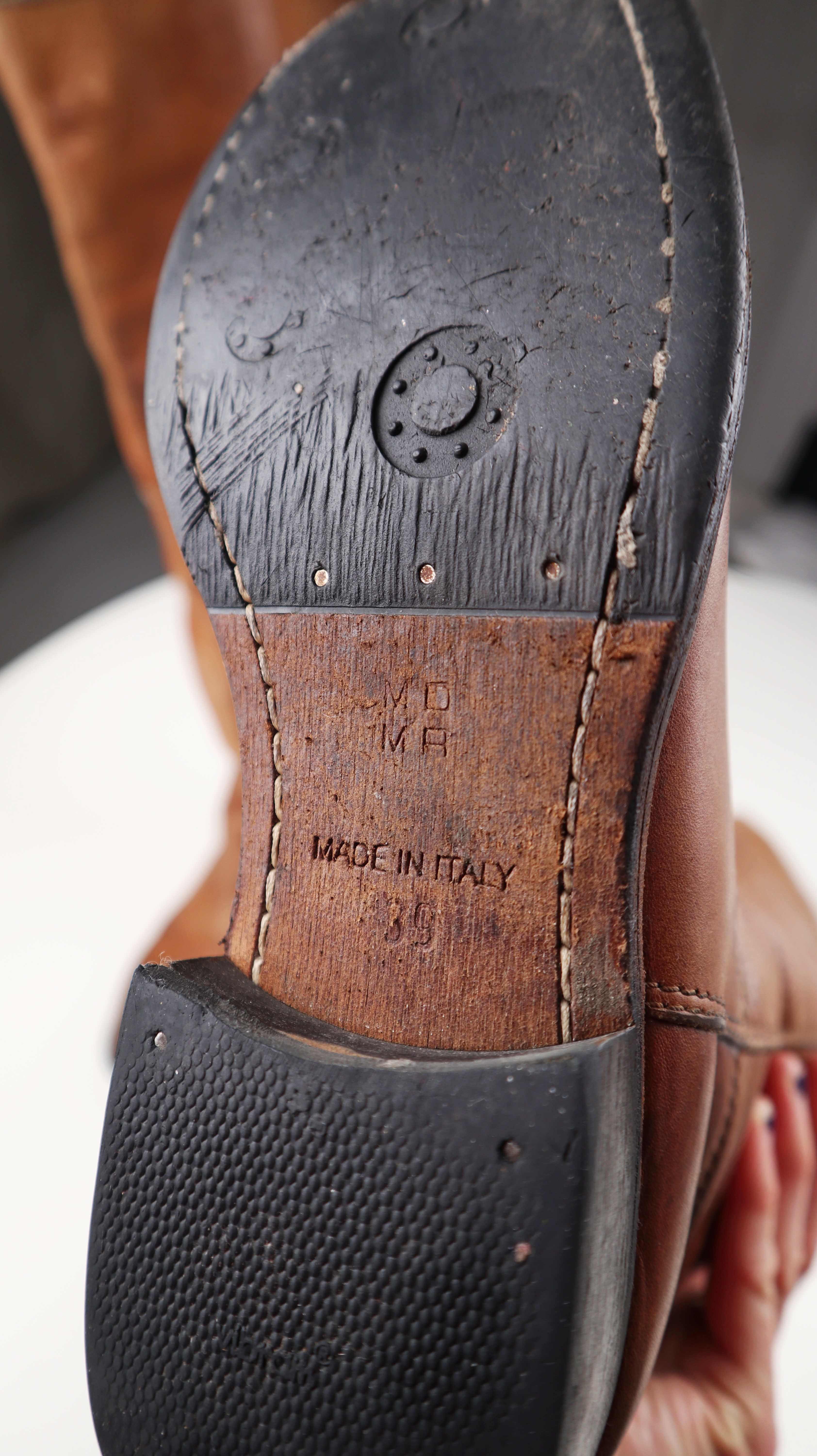 MoMa Stiefel 39 Lederstiefel lang braun Overkneestiefel made in italy Schaftstiefel
