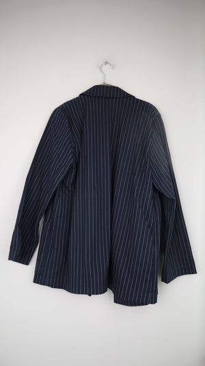 Lockerer Blazer von Monki in S. Dunkelblau, Nadelstreifen. 42 cm Achselweite und 69 cm Länge. Plus Versand