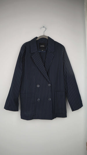 Monki Blazer Jacke Dunkelblau Nadelstreifen Blau 36 S Boxy