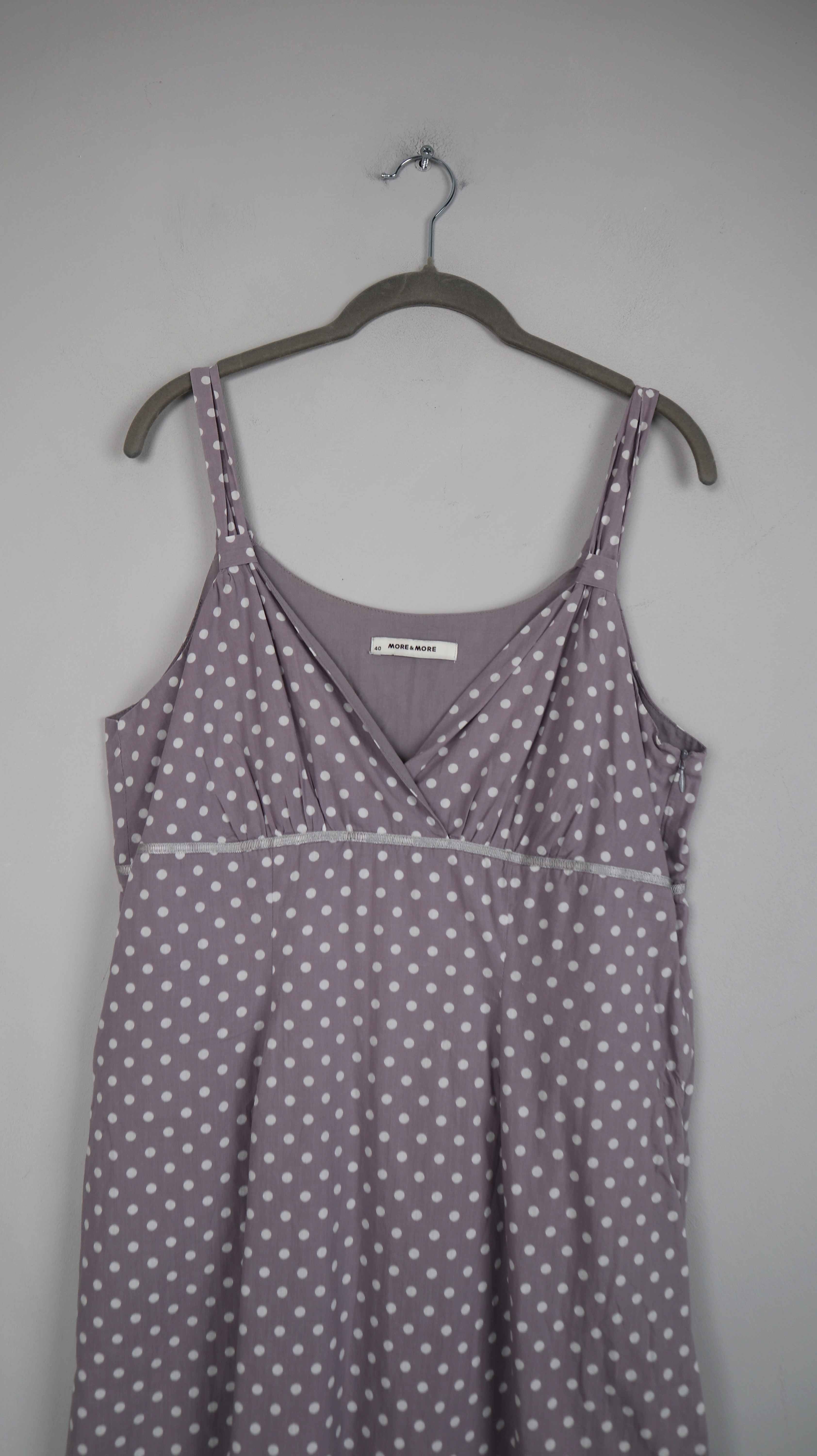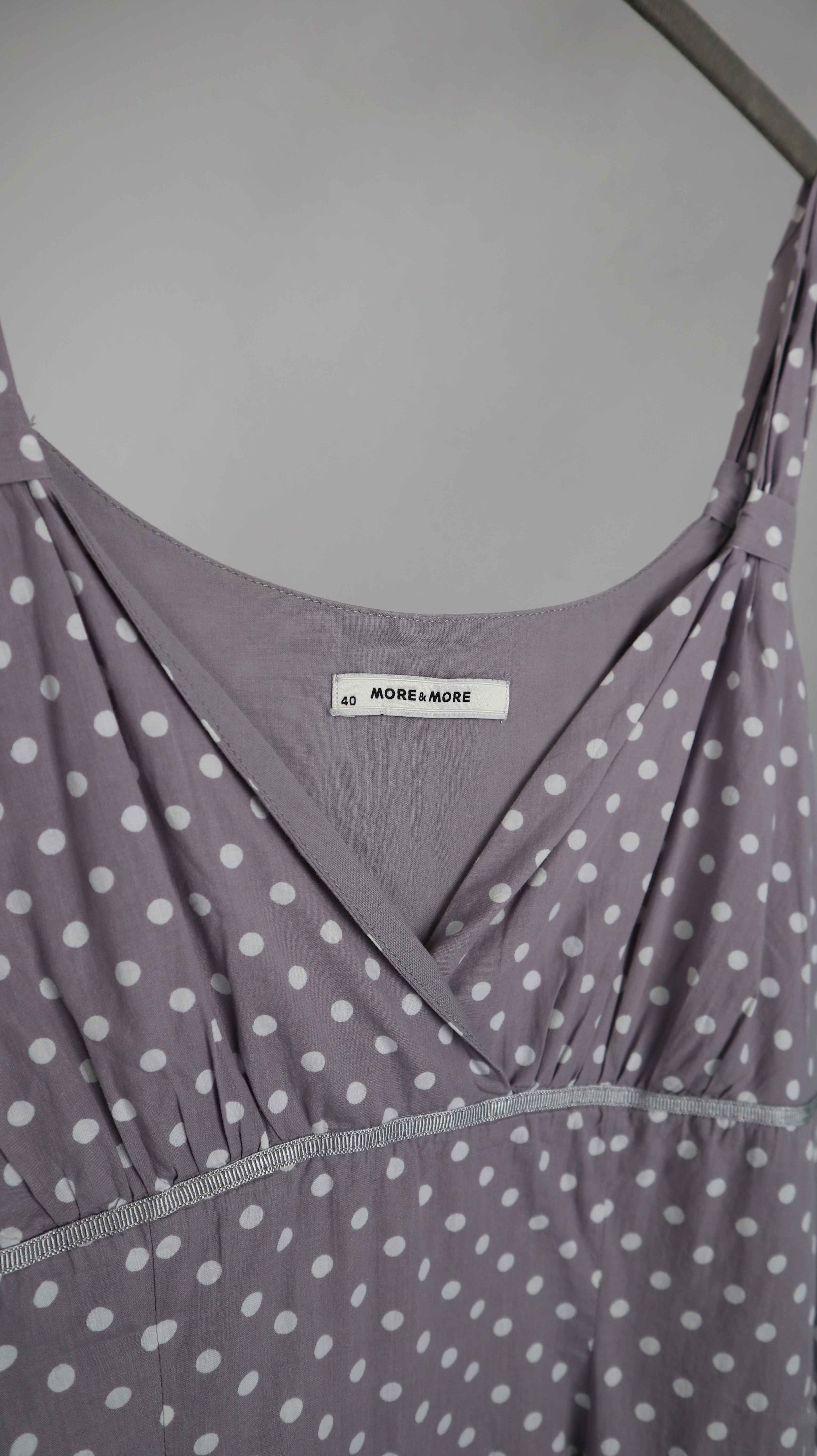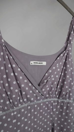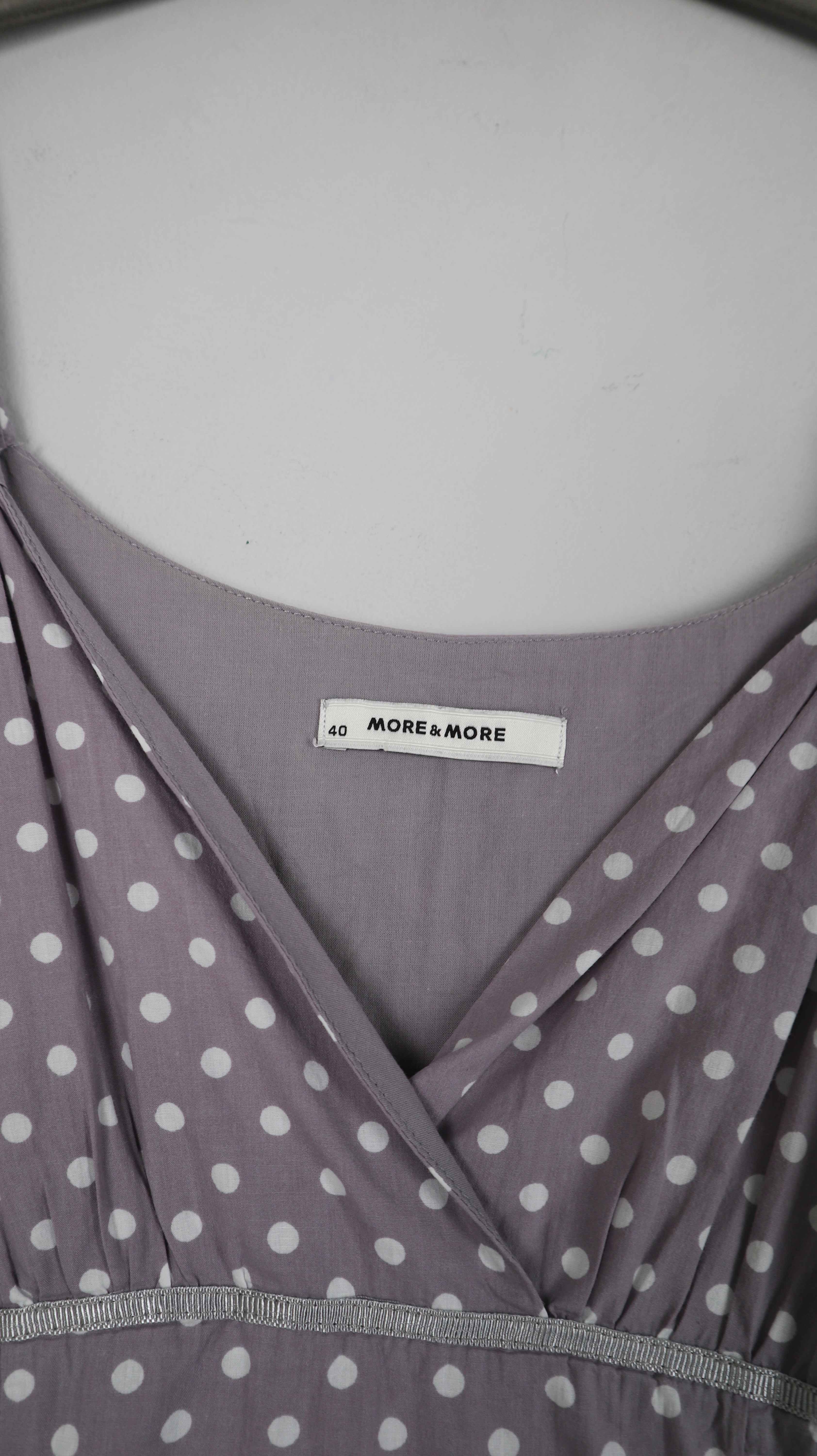 More & More Kleid Gepunktet Sommerkleid 40 L Midi Midikleid Grau weiß V-Ausschnitt