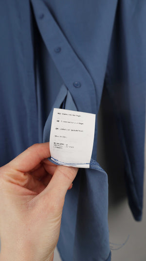 Bluse in Blau von Msch Copenhagen. 56 cm Achselweite und 74 cm Länge. Plus Versand