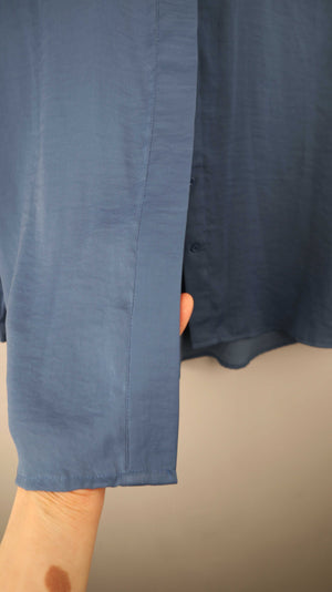 Msch Bluse Blau einfarbig 38 M einfarbig Langarm Shirt Oberteil Hemd