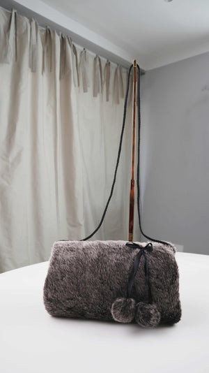 Muff Tasche Wella Fell Handwärmer schwarz braun Kunstfell