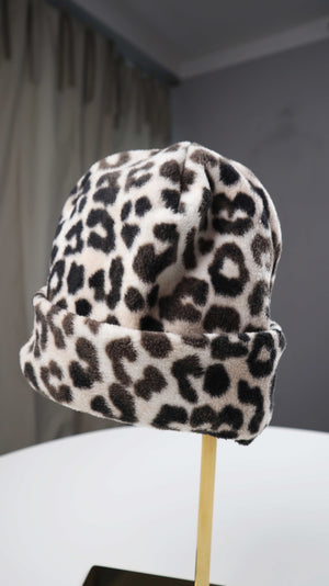 Mütze aus Fleece mit Leomuster. Plus Versand