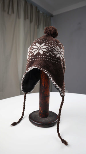Mütze Braun Wolle Inkamütze Norwegermuster Fleecemütze