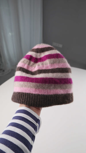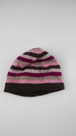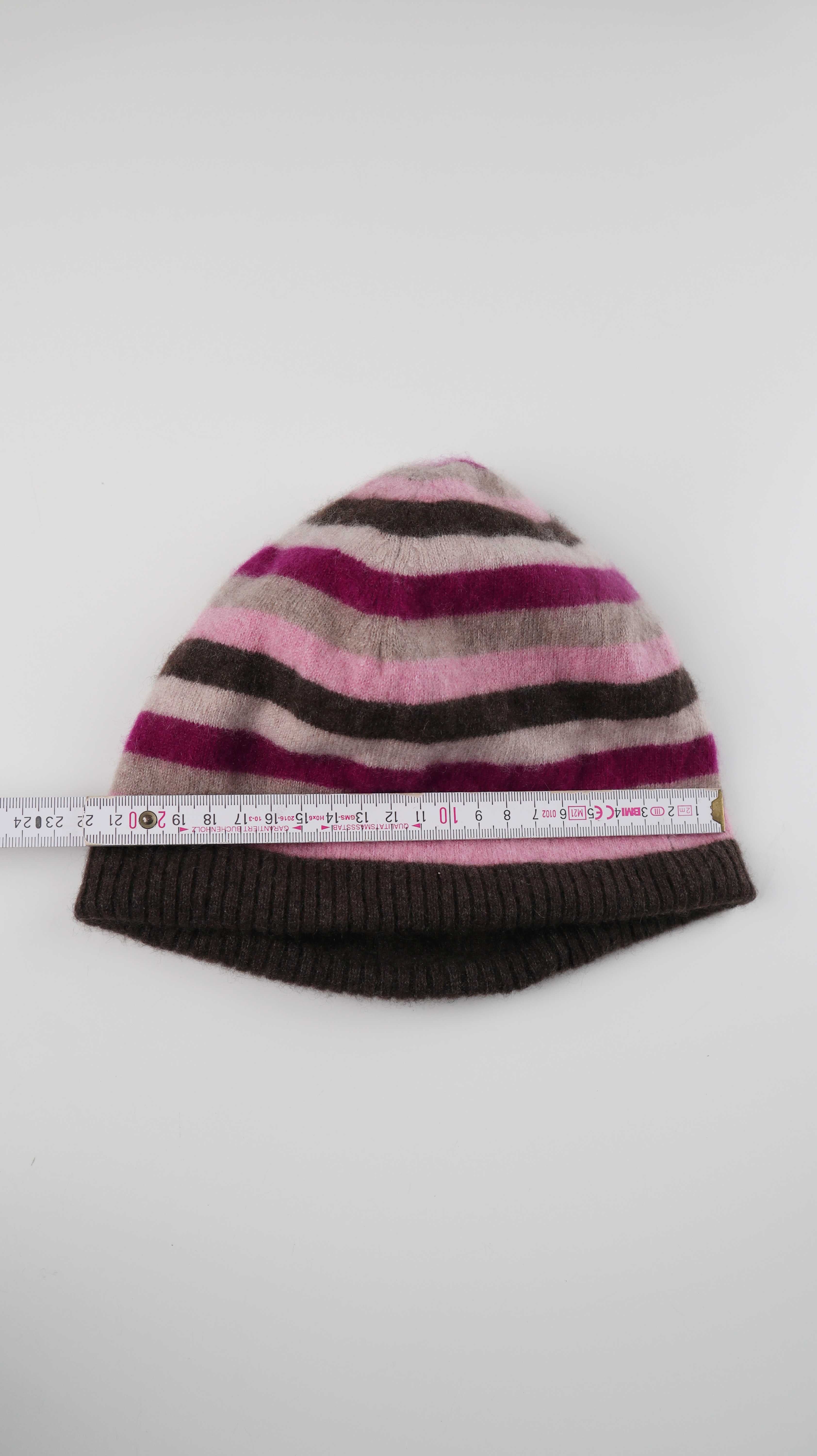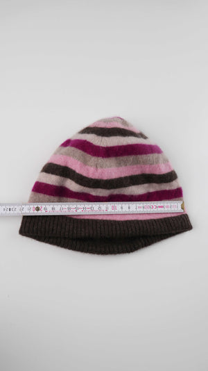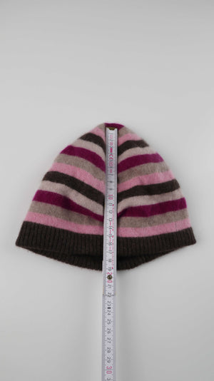 Mütze Cashmeremütze S rosa braun gestreift Strickmütze
