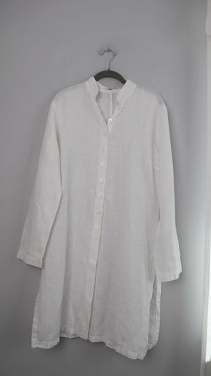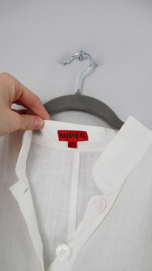 Nadine H. Leinenbluse Leinenhemd 38 M weiß Lang Shirt Midi Midikleid