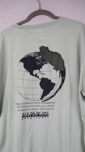 Napapijri Shirt T-Shirt Grün Hellgrün L Backprint Pastell Mintgrün Oberteil