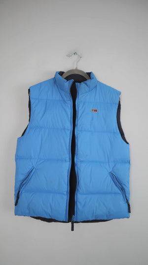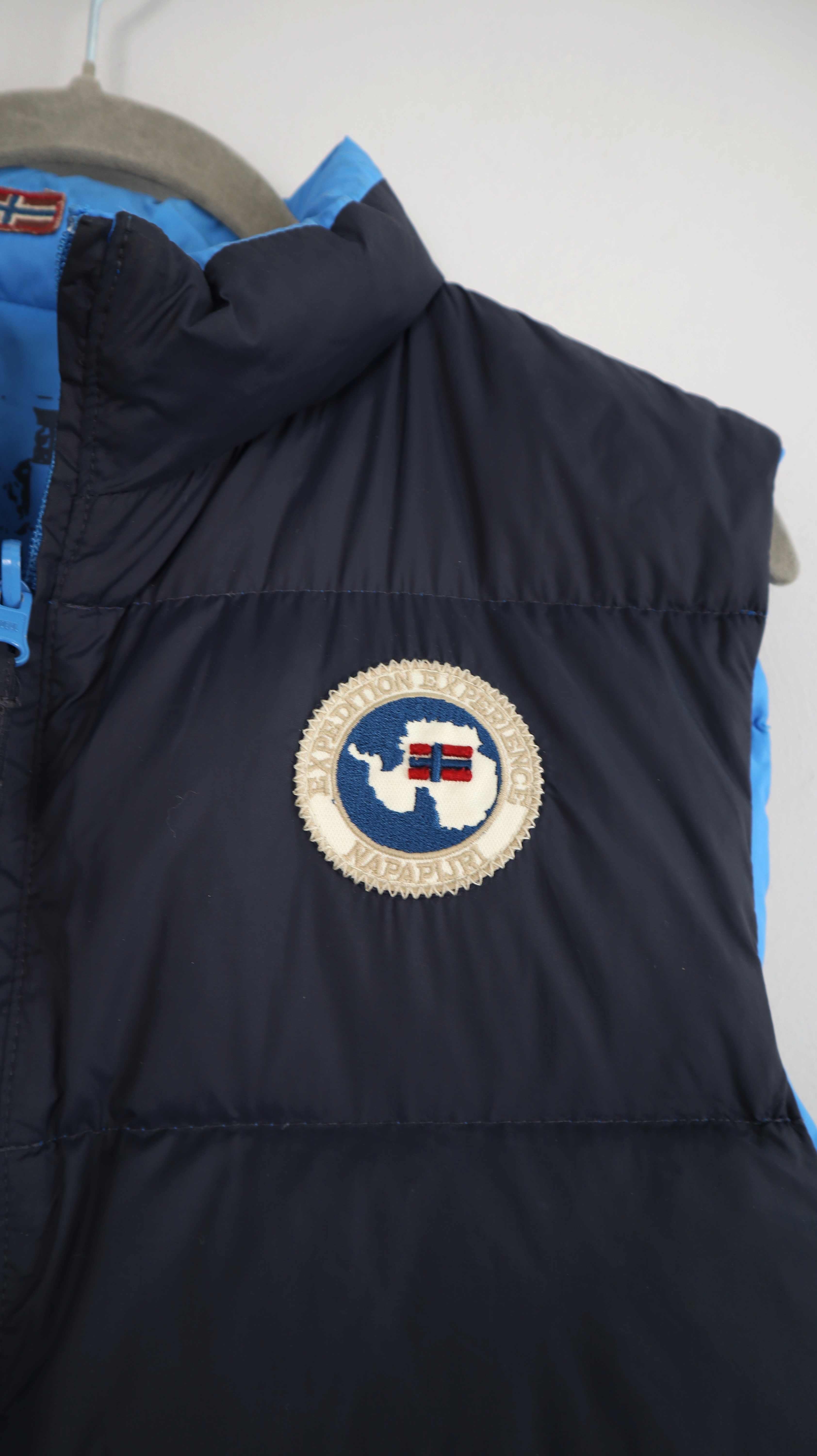 Blaue Daunenweste zum wenden von Napapijri. Sie passt einer 38 M. 50 cm Achselweite und 60 cm Länge. Plus Versand
