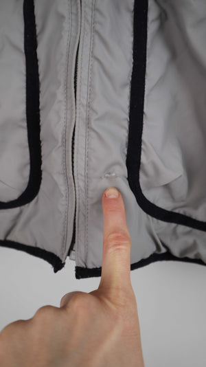 Graue Steppjacke von Nike mit kleinen Mängeln im Innenfutter und außen. Sie ist Vintage und in M ausgeschildert. 61 cm Achselweite und 70 cm Länge. Plus Versand