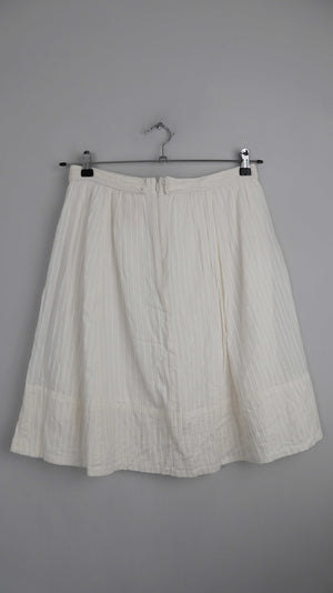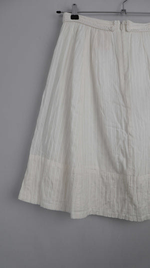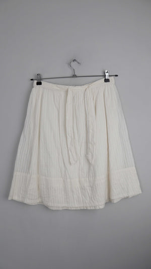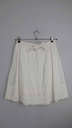 Weißer / Cremiger Rock aus Baumwolle von Noa Noa. Sehr guter Zustand, vorne mit einem festen Band zum Schleife binden. Er ist in S ausgeschildert, er passt auch einer 38 M. 38 cm Bundweite, 54 cm Länge. Plus Versand