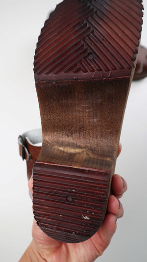 Braune Holzclogs in Größe 38 von nybrotoffeln. Plus Versand