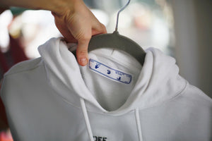Weißer Hoodie von Off White in einem sehr guten Zustand. Er passt Jungs mit einer M. Ohne Mängel, kleine Details am Bändchen. 62 cm Achselweite und 59 cm Länge. Plus Versand