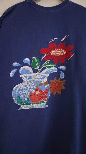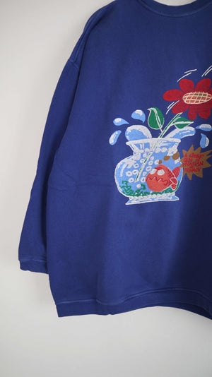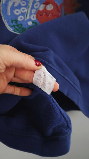 Oilily Pullover Blau 40 L dunkelblau Print Sweater bedruckt 90s Vintage