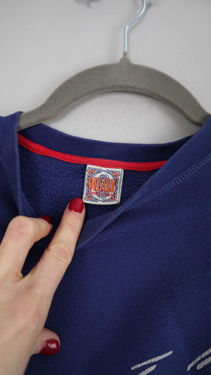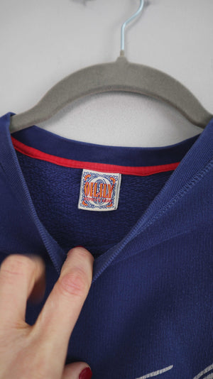 Vintage Oilily Sweater in einem dunklen Blau. Er passt einer M bis L. 60 cm Achselweite und 64 cm Länge. Plus Versand