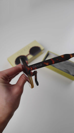 Neue runde Sonnenbrille mit Case von Okkia. Plus Versand