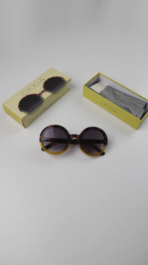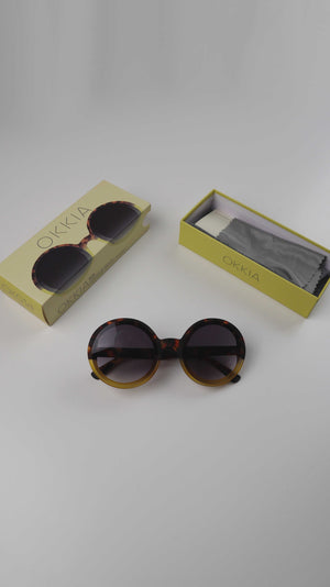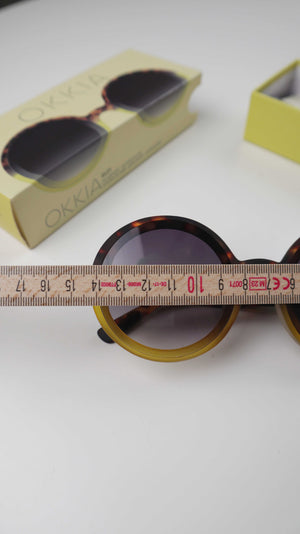 Okkia Sonnenbrille neu rund braun Gelb made in Italy