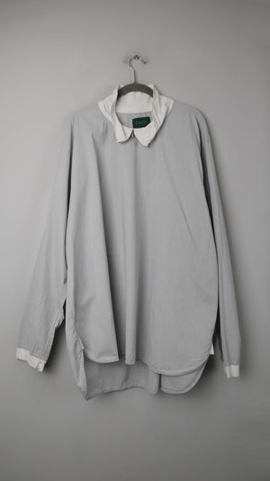OMEN Bluse Blau Weiß Hemd langarm grafisch oversized Einheitsgröße Hellblau
