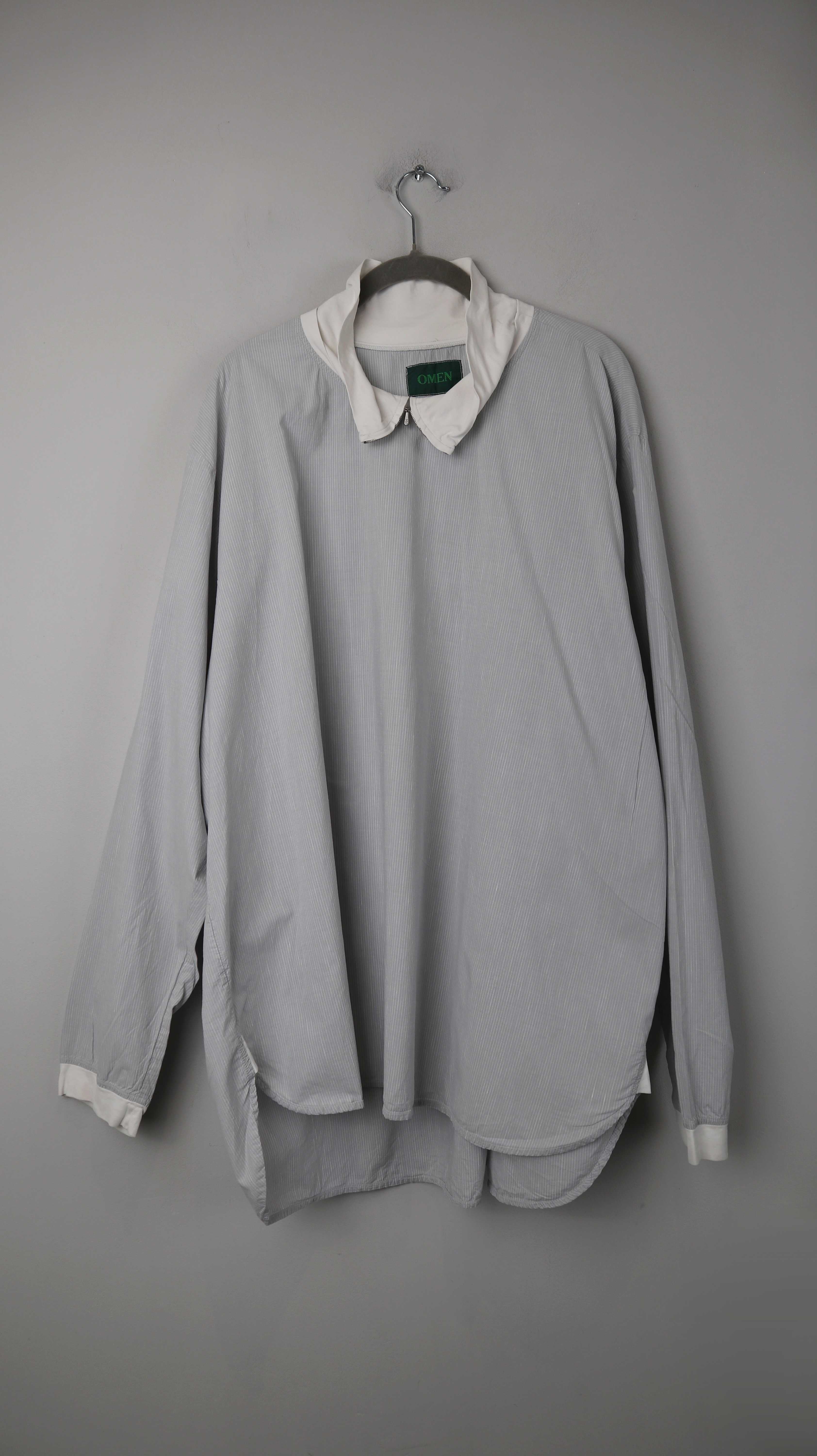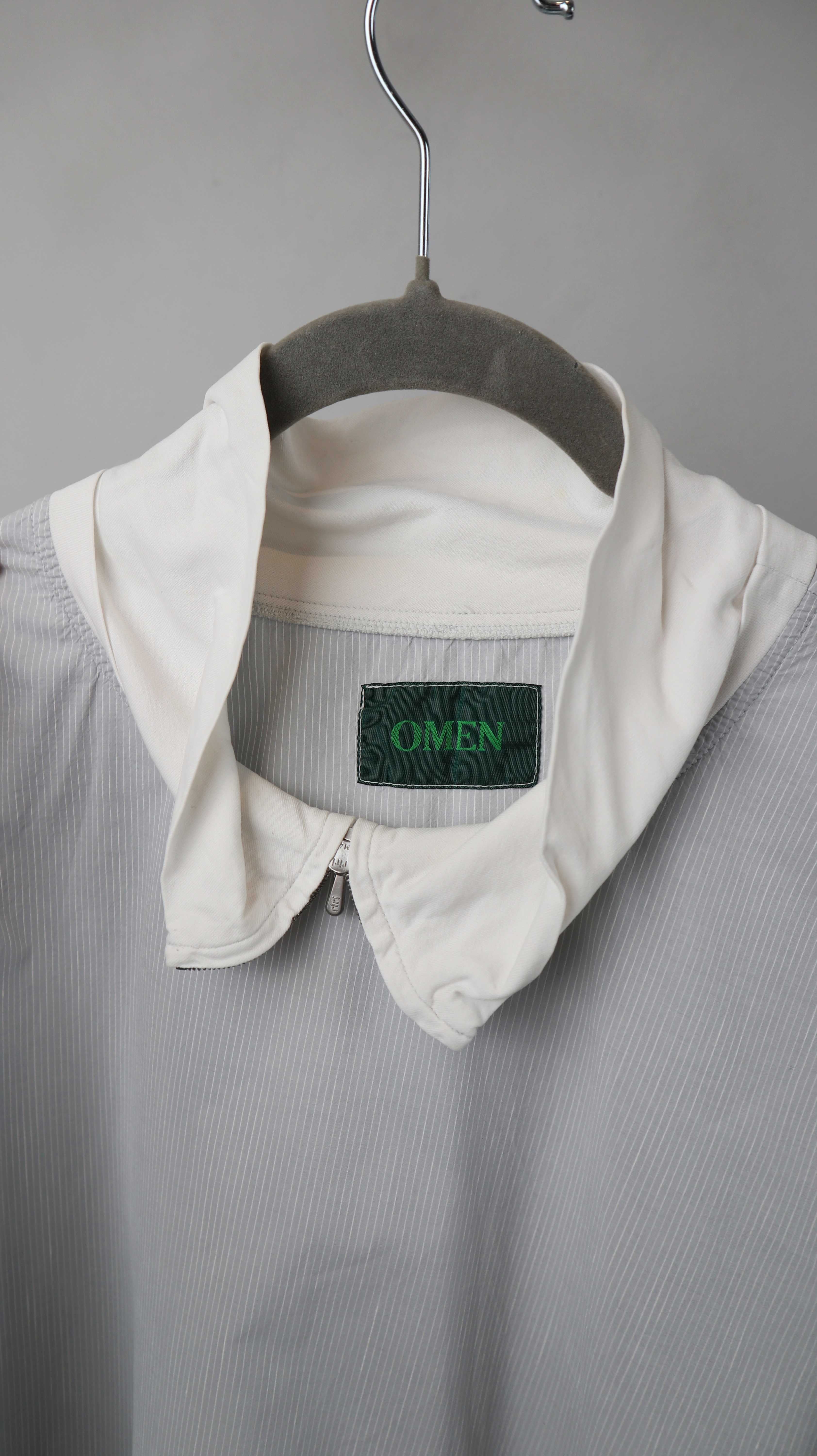 Unisex Hemd von OMEN in einer EInheitsgröße aus Baumwolle. Es hat einen weißen Kragen. An einigen kleinen Stellen sind Pflecken, die nicht mehr herausgehen. 64 cm Achselweite und 70 cm Länge. Plus Versand