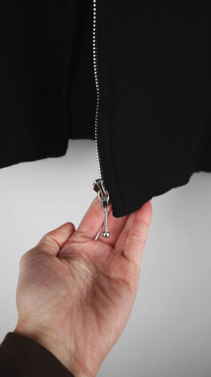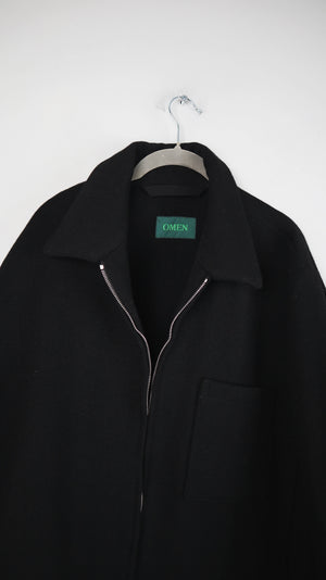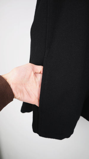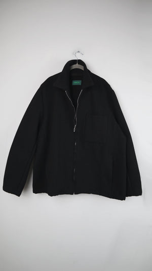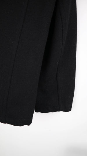 Schwarze Wolljacke von OMEN. Sie hat kein Größenetikett, weil viele Teile von OMEN in einer Einheitsgröße sind. Es entspricht von der Einschätzung einer XL, kann aber auch von einer 40 L (boxy) getragen werden. Die Jacke ist für Herren, sehr guter Zustand. 63 cm Achselweite und 74 cm Länge. Plus Versand