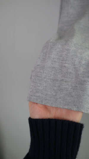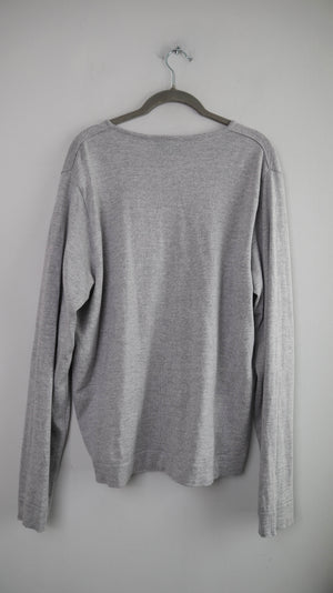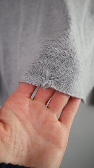 Grauer Pullover in einer Einheitsgröße von OMEN. Er hat einige kleine Stellen, an denen er gestopft ist. 56 cm Achselweite und 66 cm Länge. Plus Versand