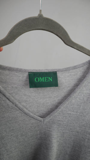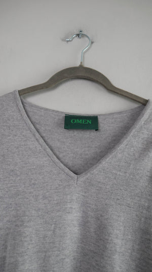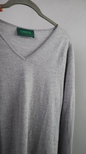 Omen Pullover Grau basic V-Ausschnitt Wolle Einheitsgröße Wollpullover