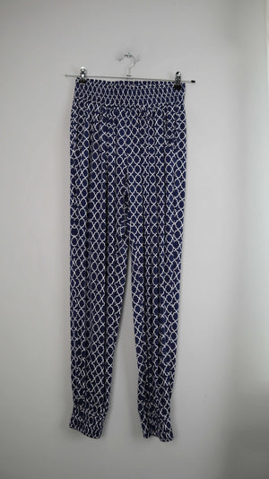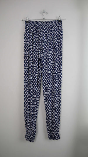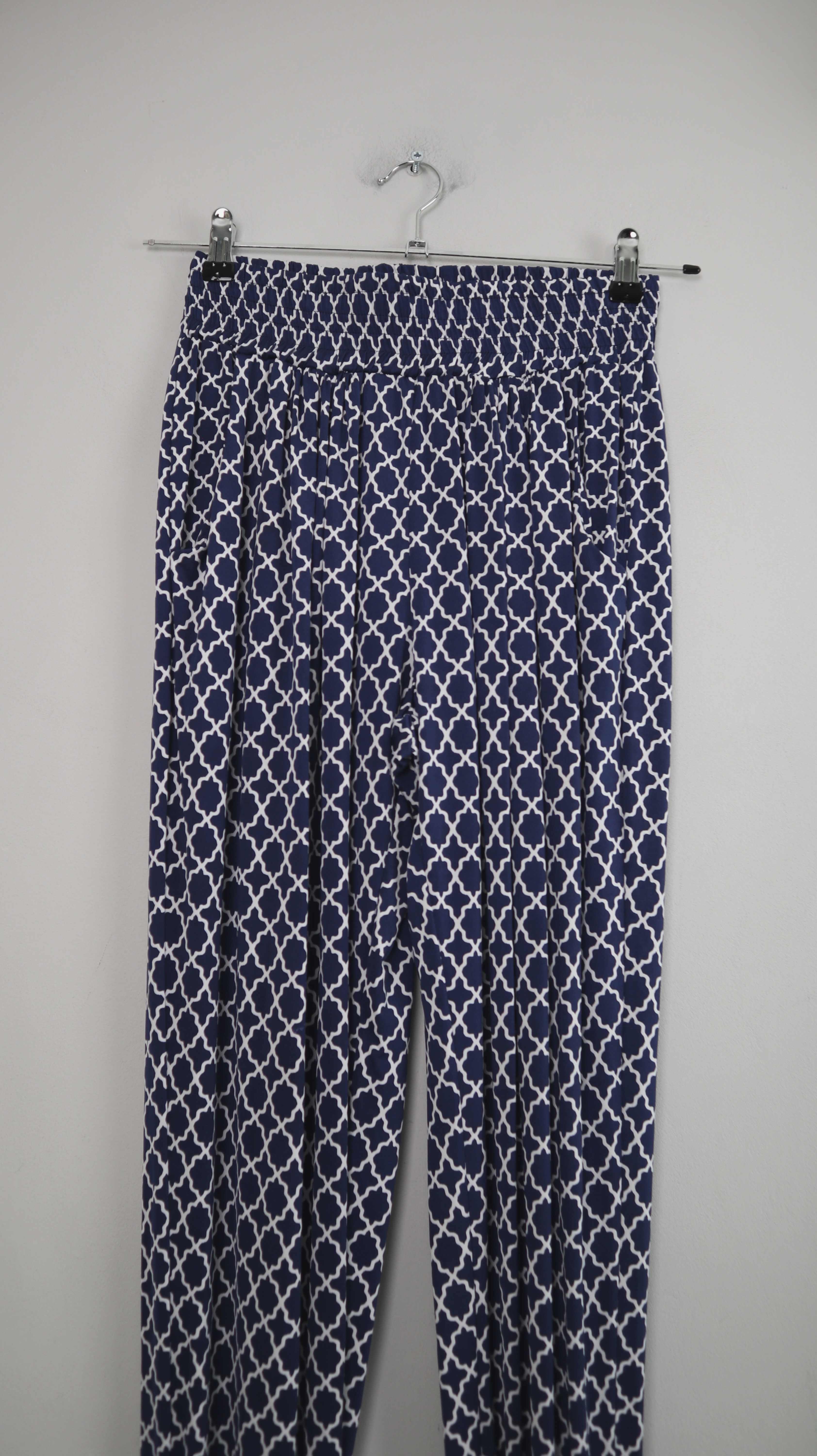 Oneju Hose blau weiß Sommerhose 38 M gemustert Haremshose
