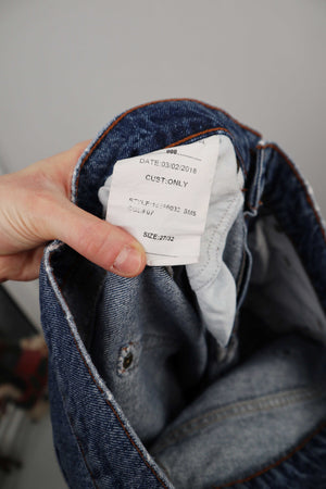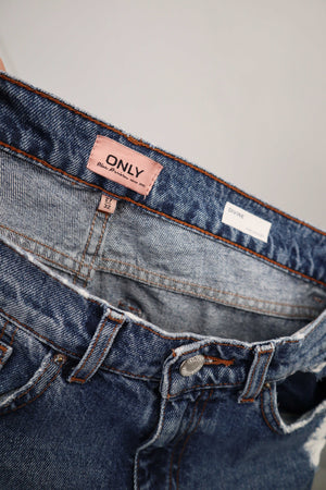 Dunkelblaue Jeans von Only in 27/32. Sie passt einer 36 S. 38 cm Bundweite, 25 cm Schritthöhe und 74 cm Innenbeinlänge. Plus Versand