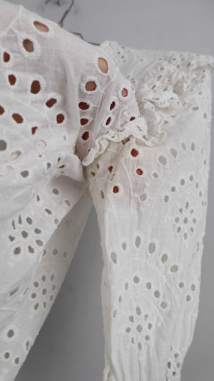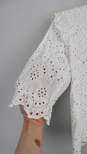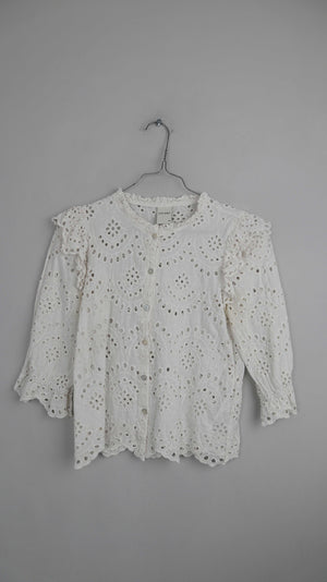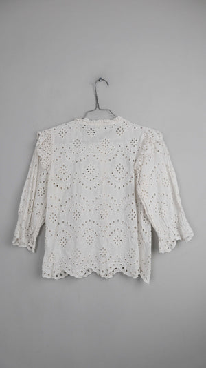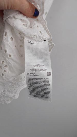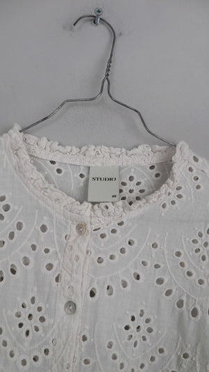 Only Studio Bluse XS weiß bestickt 34 gelocht Shirt Oberteil Spitzenbluse
