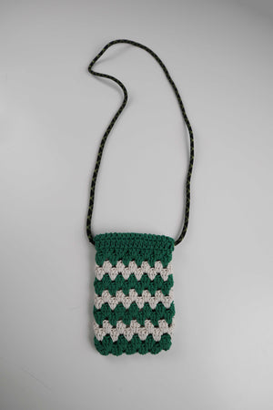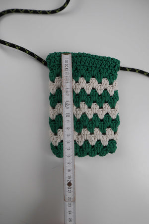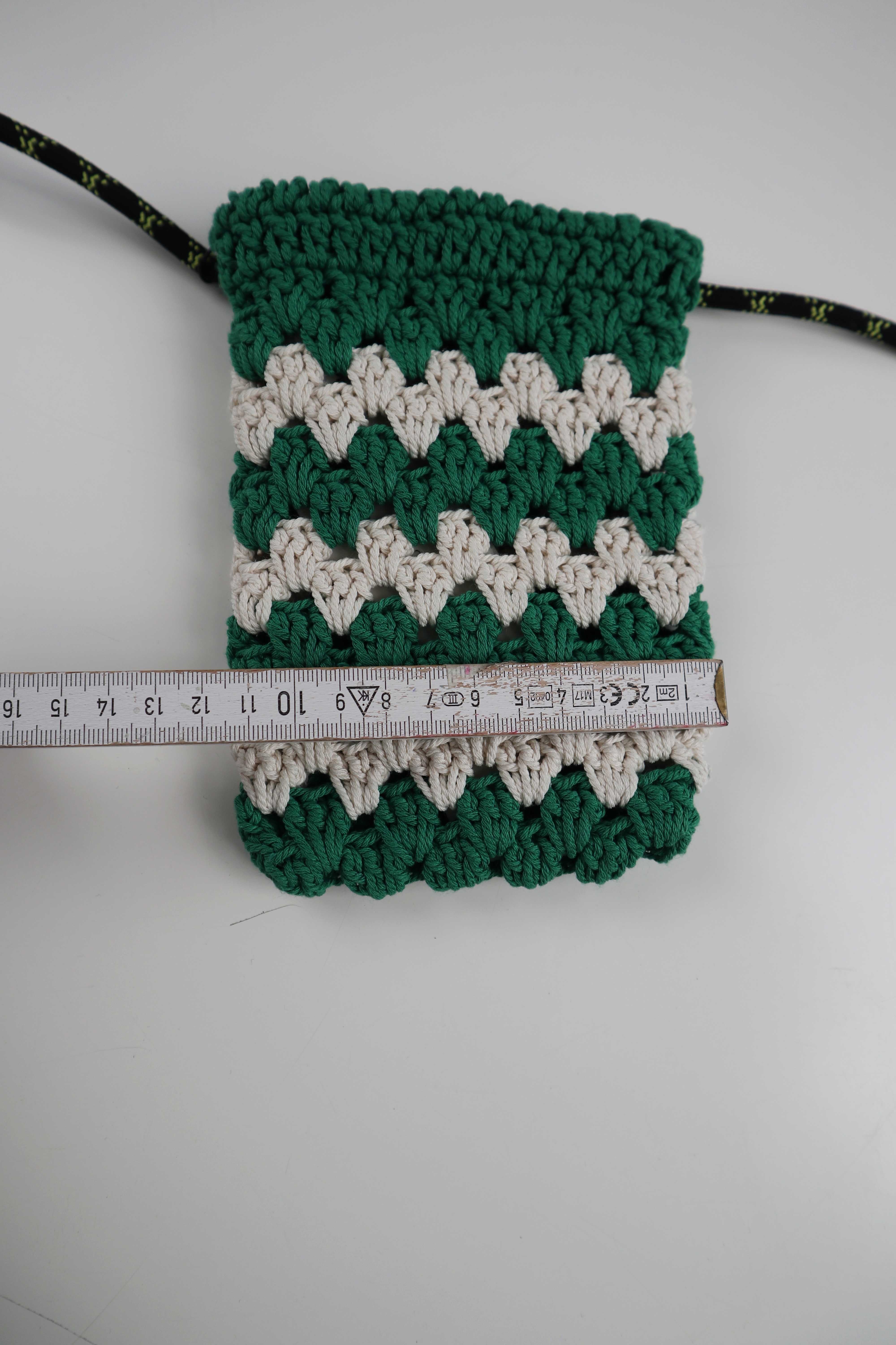 Opus Etui Umhängetasche Handyhülle neu gehäkelt Häkeltasche grün weiß